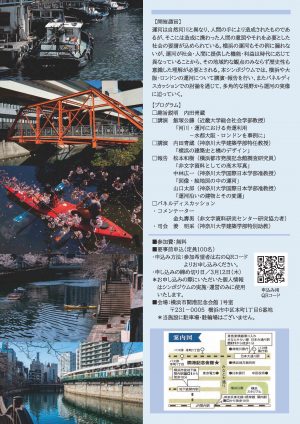 In this symposium, lectures and reports will be presented on the canals of Yokohama, Osaka, and London. Through these presentations and a panel discussion, the symposium aims to explore the multifaceted realities of canals from a broad and interdisciplinary perspective.