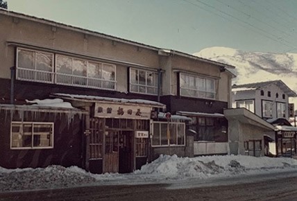 A lodging in a post town on a mountain pass that has become a ski inn (Yuzawa town, Niigata prefecture, taken around the late 1960’s, courtesy of Yasuaki Maruyama)