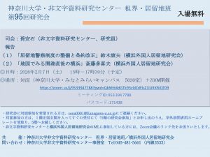 【研究会】租界・居留地班第95回研究会を開催します(2026年2月7日、土)